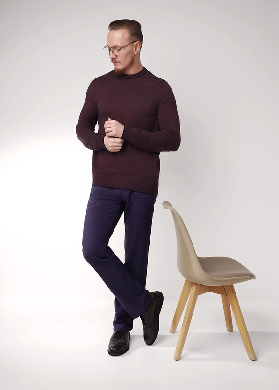 Классический вязаный джемпер с круглой горловиной. Изделие изготовлено из смесовой пряжи с содержанием хлопка. Данный джемпер удачно впишется в повседневный гардероб современного мужчины, привнося тепло, комфорт и элегантность одновременно.