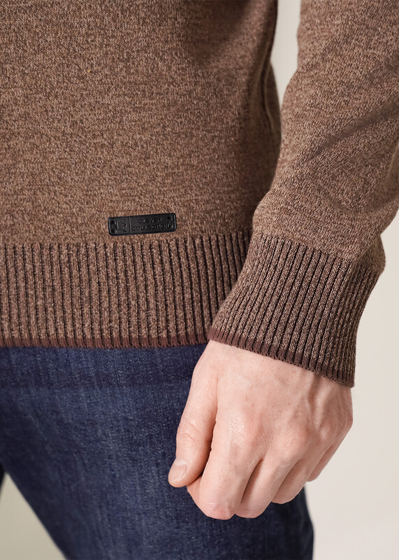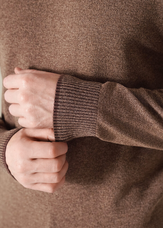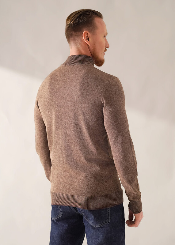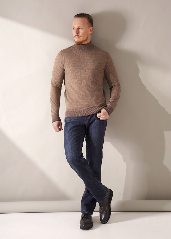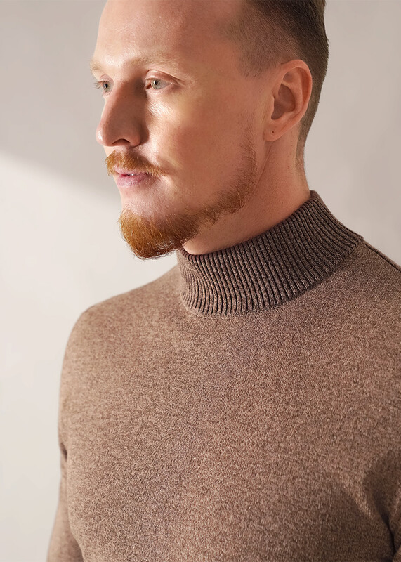 Джемпер мужской из смесовой хлопковой пряжи с длинным рукавом и воротником стойкой. Прекрасно сохраняет тепло, комфортный в носке, отличное решение на прохладное время года. Комбинируется с джинсами или брюками.