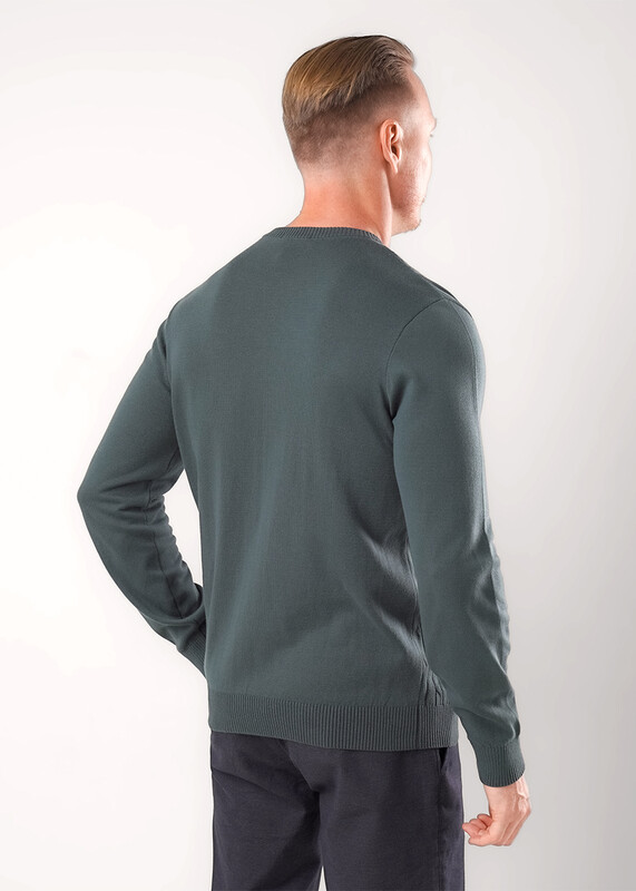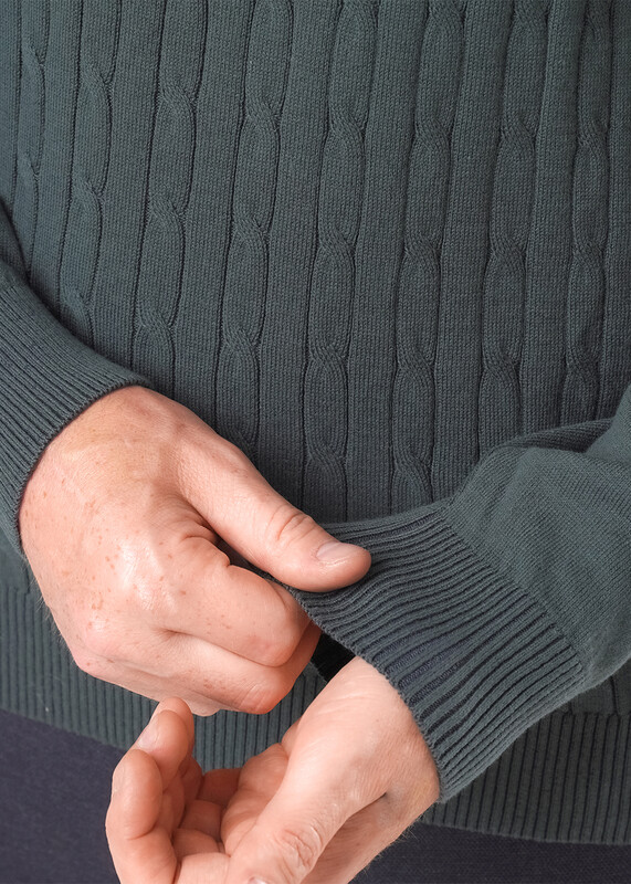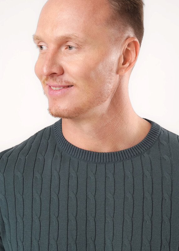 Джемпер мужской из смесовой хлопковой пряжи с длинным рукавом и груглой горловиной. Изделие дополнено вязкой с классическим узором ""косы"". Прекрасно сохраняет тепло, отличное решение на холодное время года. Комбинируется с джинсами или брюками.