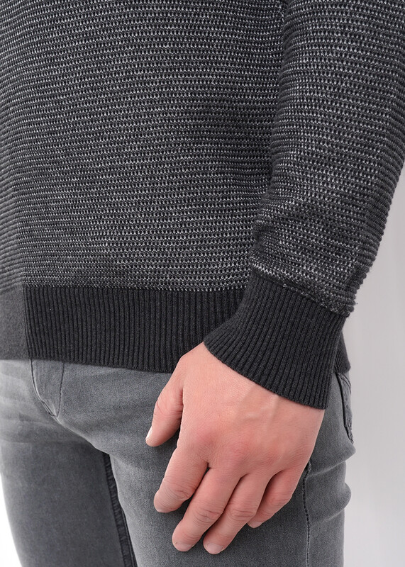 Мужской вязаный джемпер с круглым вырезом горловиины и длинным рукавом-незаменимая вещь в гардеробе модника. Модель уникальна провязанными цветными контрастными полосами в области груди. Сочетание с джинсами и кедами сделает образ более повседеневным.
