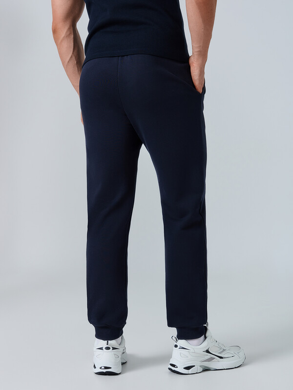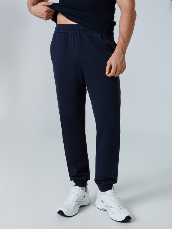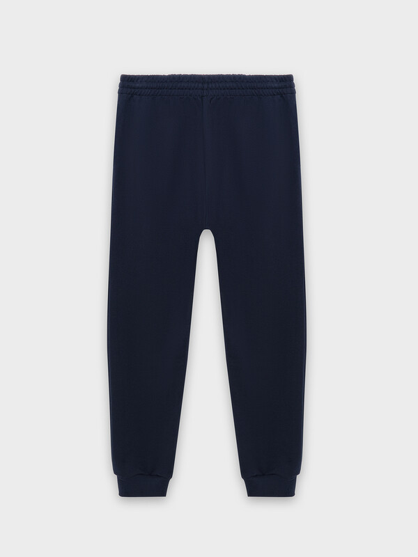 Брюки джоггеры свободные. Пояс цельнокроёный с эластичной тесьмой внутри. С внешней стороны пояса пробиты петли и втянут шнур с эглетами 8 KXWC-1 (и плоский 10 PXC-1 по заданию). На передних деталях обработаны карманы в швах. Подкладка карманов из кулирки. По низу отрезные манжеты из рибаны.