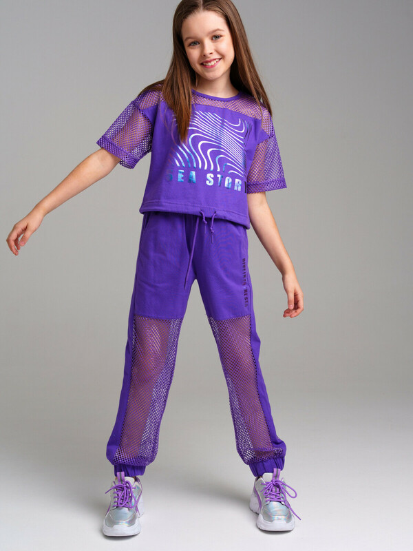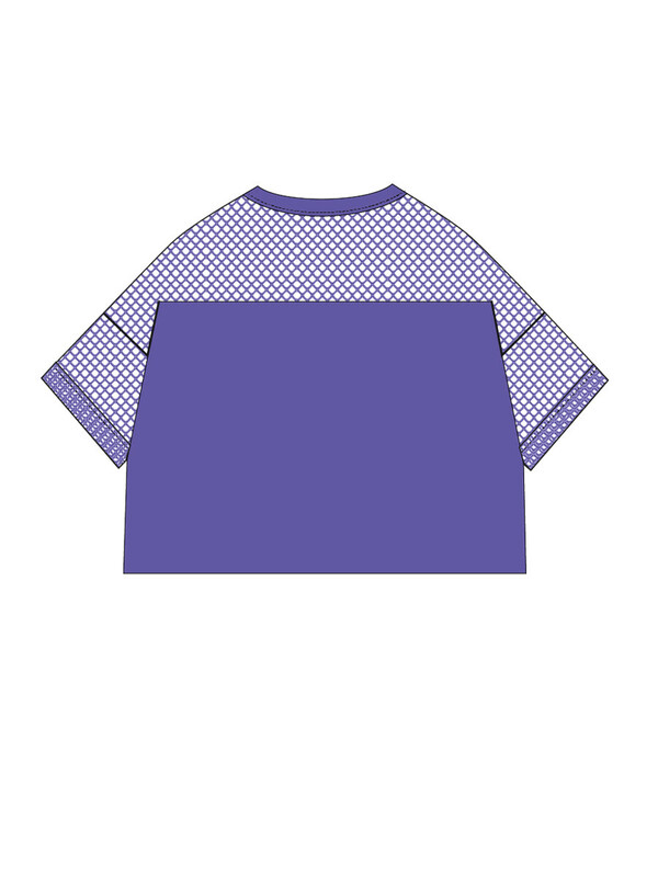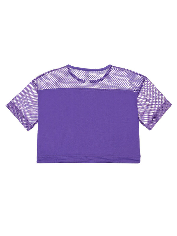 Укороченная футболка oversize из качественного и приятного на ощупь трикотажа джерси и сетки. Высокое содержание хлопка 95%. Благодаря наличию эластана в составе ткани изделие проще в уходе и держит форму. По низу футболки утяжка шнурком.