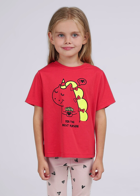 Хлопковая футболка с ярким принтом станет любимой в гардеробе девочки! Комфортная посадка, умеренный объем. Сочетай модель с брюками или юбкой.