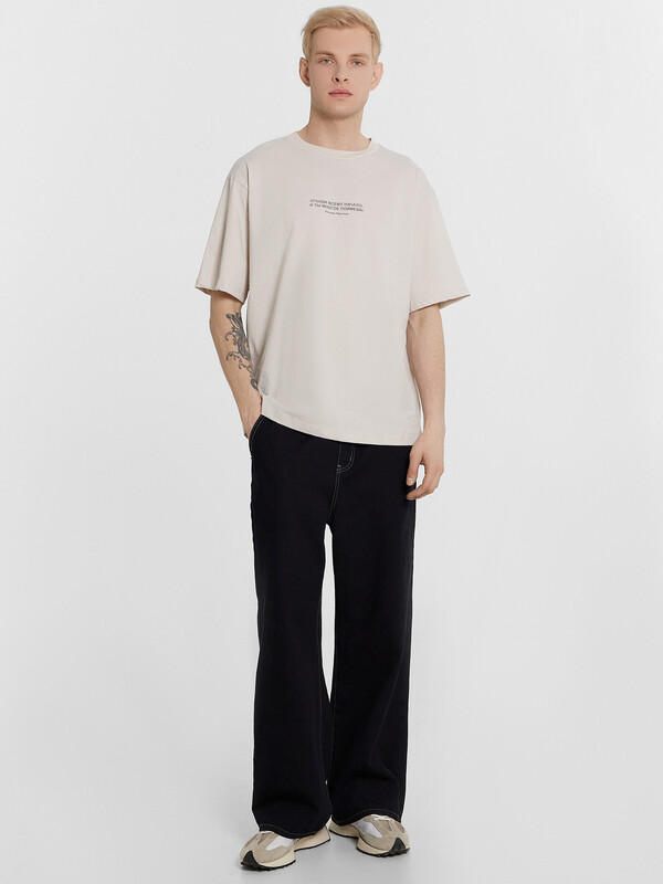 Футболка свободного силуэта из кулирного полотна. Горловина круглой формы. Спущенная линия плеча и углубленная пройма гарантируют свободу движений. Длина рукава чуть выше локтя. Рекомендуем!