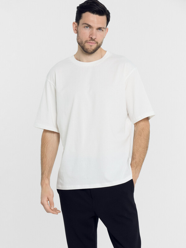 Футболка свободного силуэта из кулирного полотна. Горловина круглой формы. Спущенная линия плеча и углубленная пройма гарантируют свободу движений. Длина рукава чуть выше локтя. Рекомендуем!