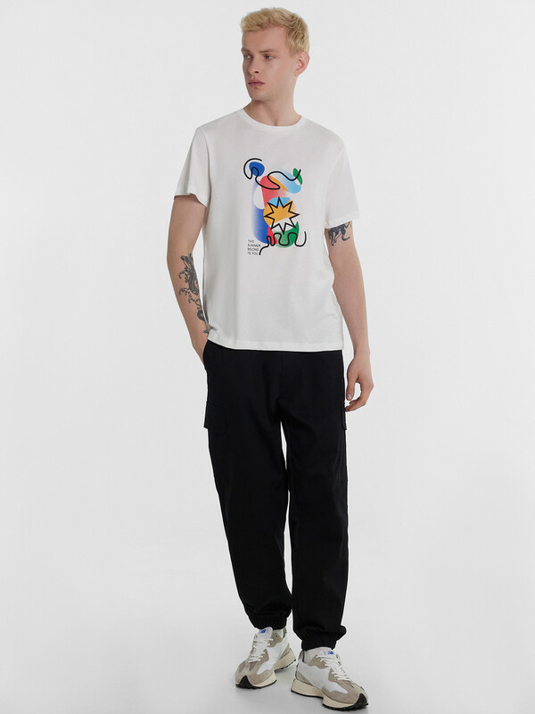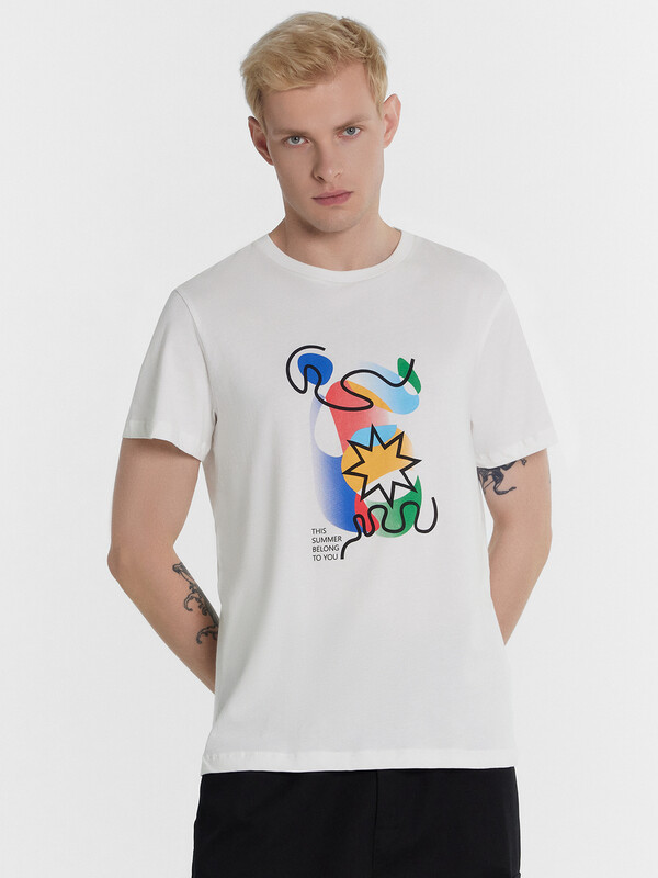 Футболка из кулирного полотна. Силуэт прямой. Длина до середины бедер. Спинка и перед – без швов и рельефов. Горловина круглая. Рукава короткие. Актуальная футболка для стильных мужчин!