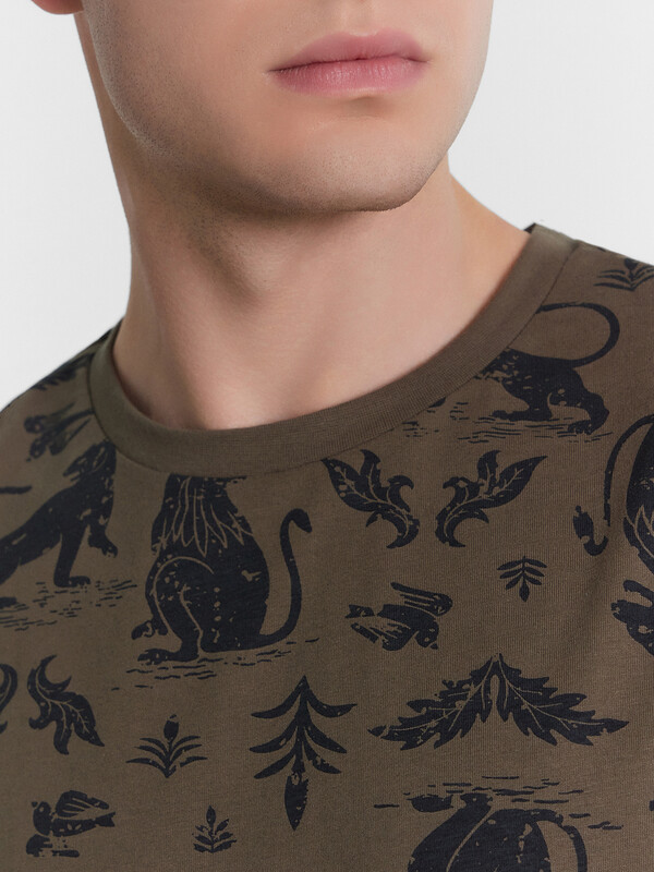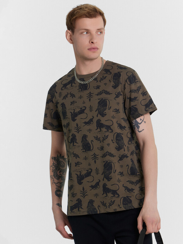 Футболка из кулирного полотна. Силуэт прямой. Длина до середины бедер. Спинка и перед – без швов и рельефов. Горловина круглая. Рукава короткие. Актуальная футболка для стильных мужчин!