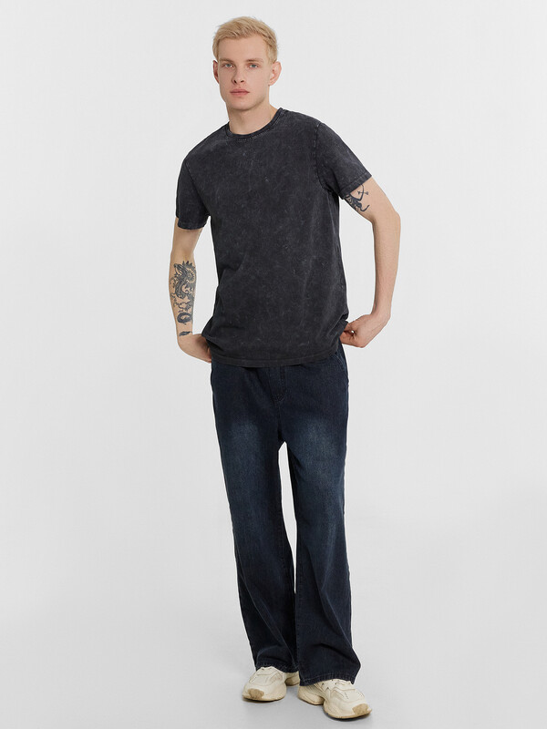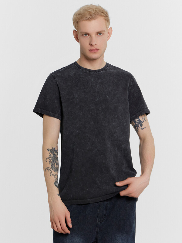 Футболка из кулирного полотна. Силуэт прямой. Длина до середины бедер. Спинка и перед – без швов и рельефов. Горловина круглая. Рукава короткие. Актуальная футболка для стильных мужчин!