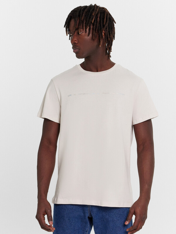 Футболка из кулирного полотна. Силуэт прямой. Длина до середины бедер. Спинка и перед – без швов и рельефов. Горловина круглая. Рукава короткие. Актуальная футболка для стильных мужчин!