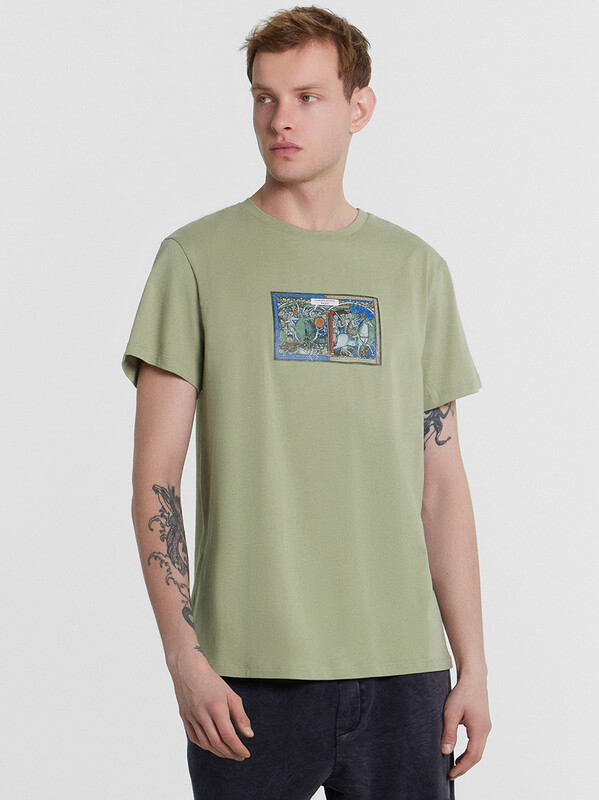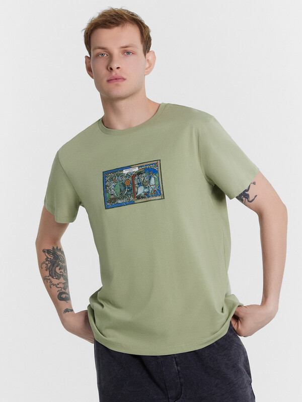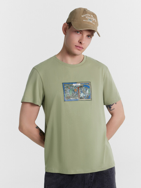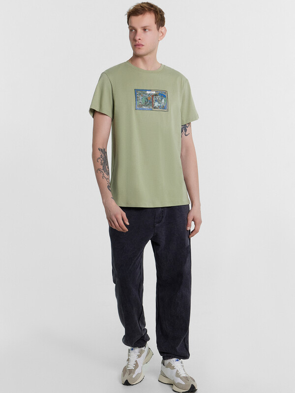 Футболка из кулирного полотна. Силуэт прямой. Длина до середины бедер. Спинка и перед – без швов и рельефов. Горловина круглая. Рукава короткие. Актуальная футболка для стильных мужчин!
