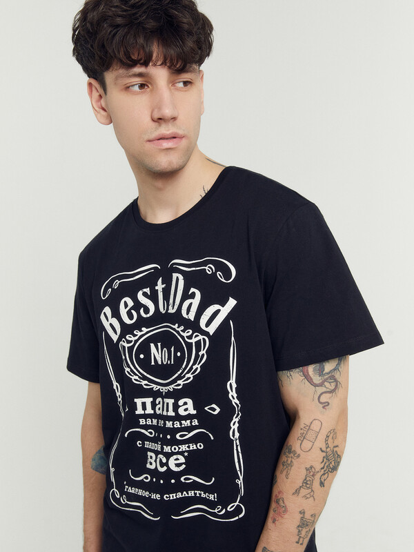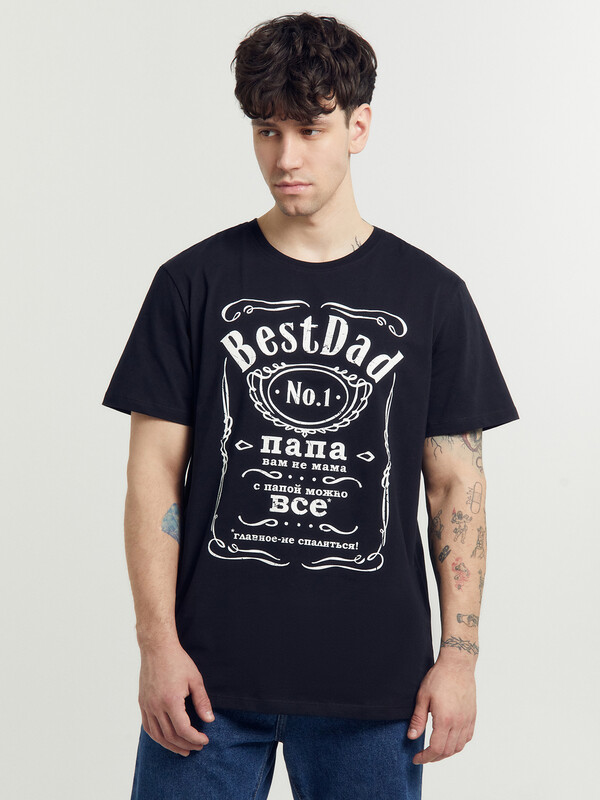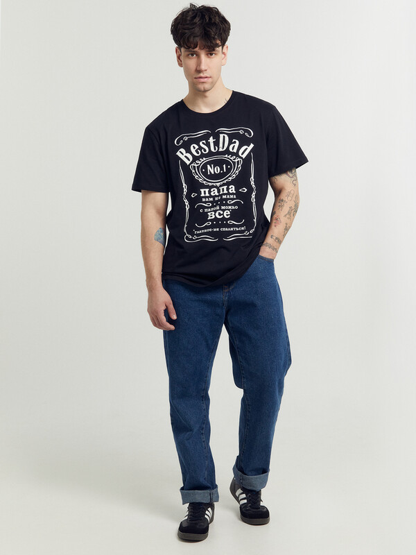 Футболка мужская свободного силуэта из трикотажного полотна кулирка. Горловина круглой формы, обтачка из рибаны. По горловине проложена отделочная строчка. Бейка по горловине спинки из кулирки. Рукав втачной, короткий.