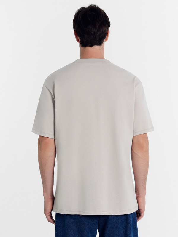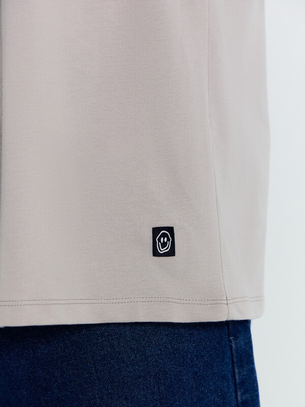 Нижние срезы футболки и рукавов обработаны швом в подгибку на