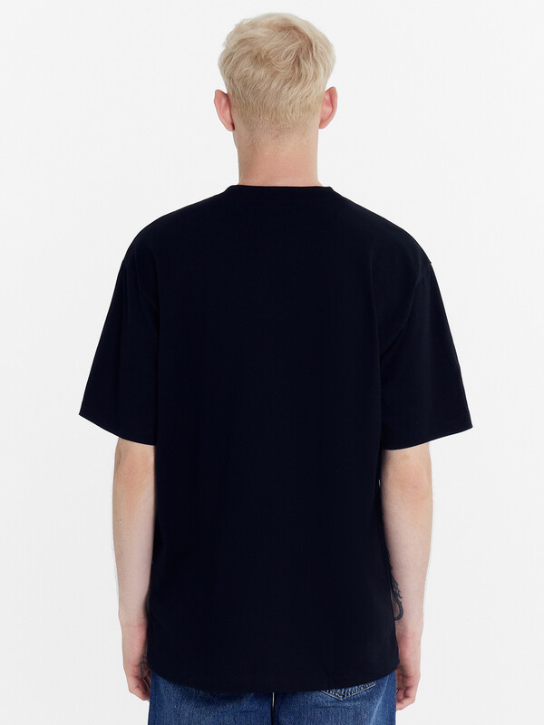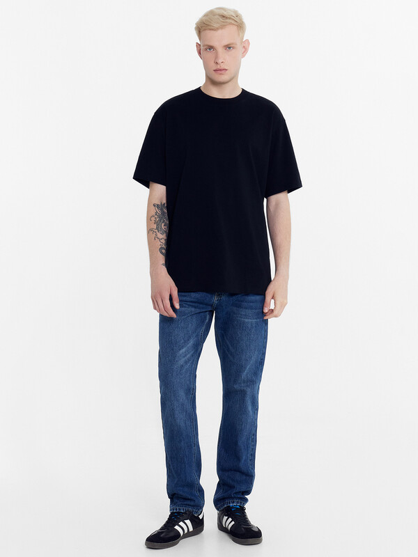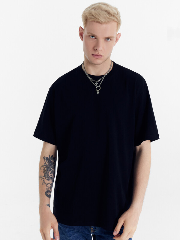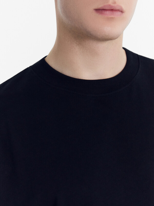 Нижние срезы футболки и рукавов обработаны швом в подгибку на