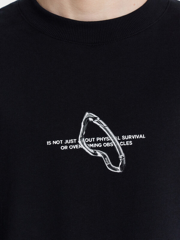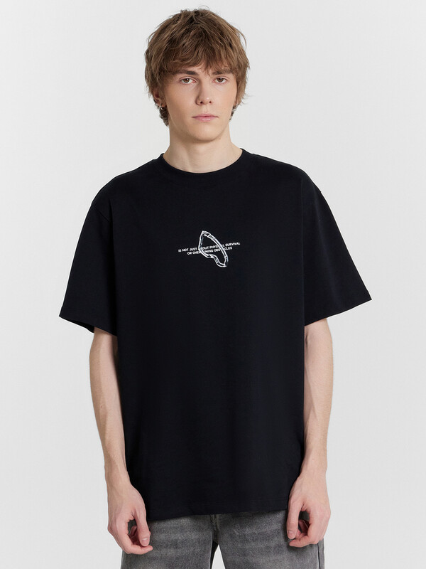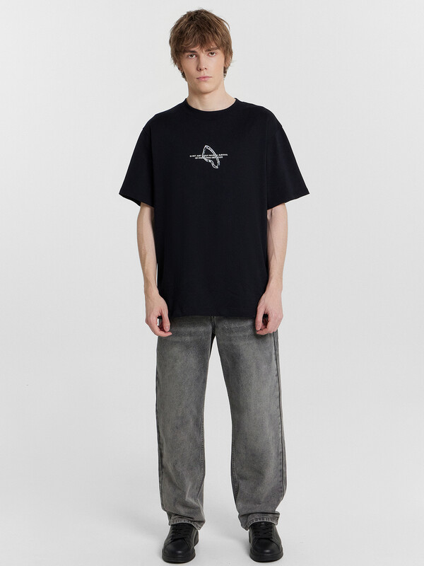 Нижние срезы футболки и рукавов обработаны швом в подгибку на