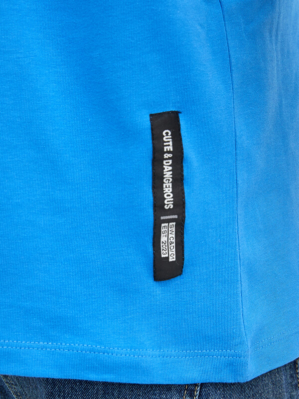 Нижние срезы футболки и рукавов обработаны швом в подгибку на