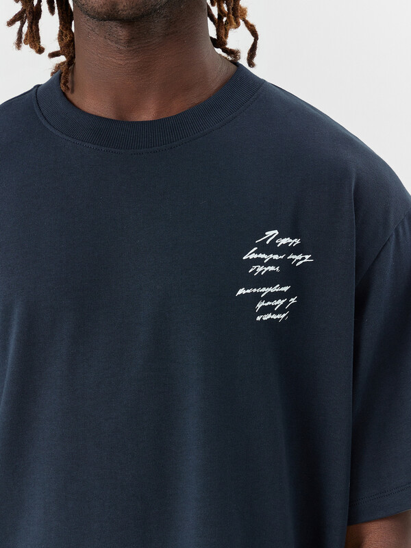 Нижние срезы футболки и рукавов обработаны швом в подгибку на