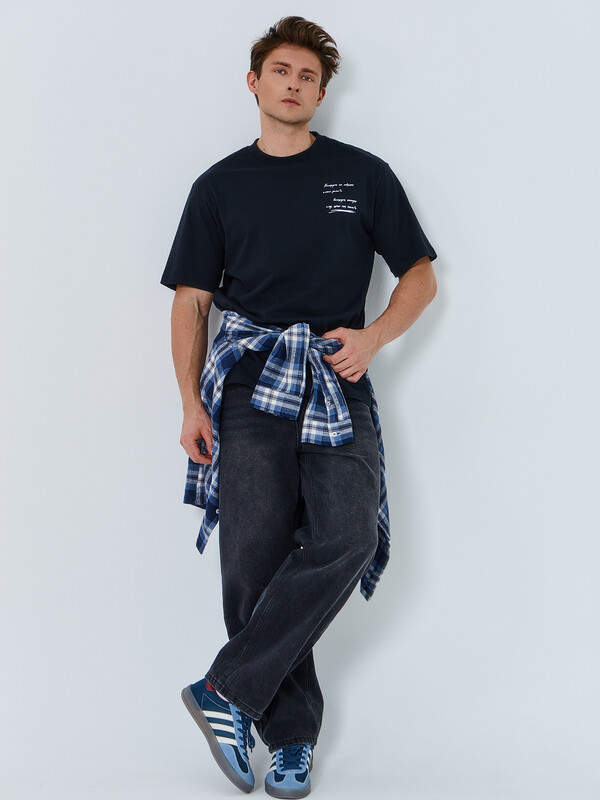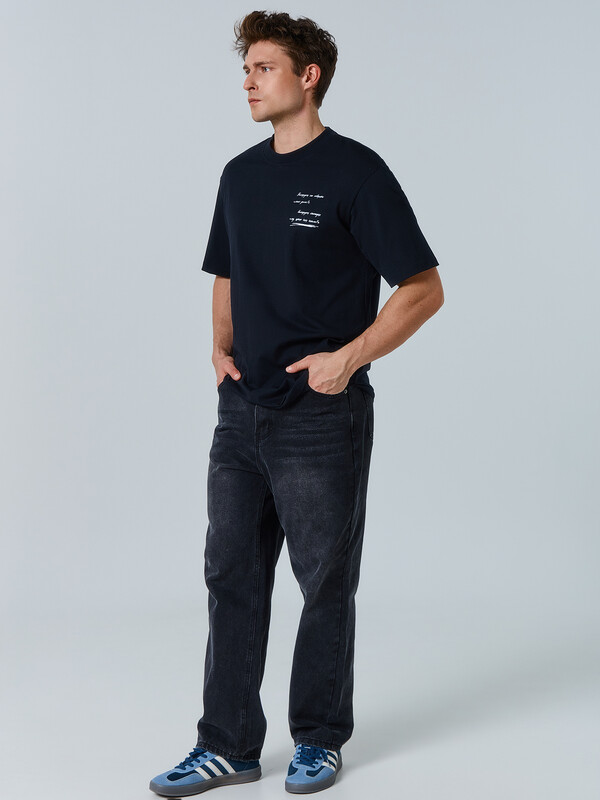 Мужская футболка свободного силуэта из натурального хлопка сочетает комфорт и стиль, становясь отличным вариантом для повседневного гардероба. Круглая горловина плотно прилегает к шее, создавая аккуратный и классический внешний вид, а спущенная линия плеча придает расслабленный современный акцент. Длина рукава чуть выше локтя делает модель удобной и универсальной, позволяя легко комбинировать ее с различными предметами одежды. Высококачественный натуральный хлопок обеспечивает мягкость, воздухопроницаемость и комфорт при носке в любое время года. Футболка идеально сочетается с джинсами, брюками, спортивными элементами гардероба и подходит для разных стилей. В линейке представлена широкая размерная сетка, базовые цвета, а также варианты с принтами и декоративными элементами, позволяя подобрать модель, соответствующую индивидуальному стилю.