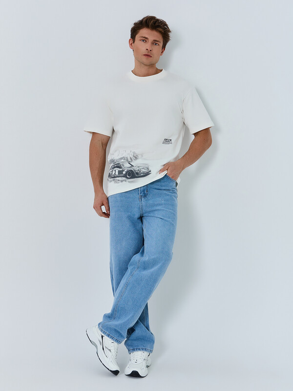 Мужская футболка свободного силуэта из натурального хлопка сочетает комфорт и стиль, становясь отличным вариантом для повседневного гардероба. Круглая горловина плотно прилегает к шее, создавая аккуратный и классический внешний вид, а спущенная линия плеча придает расслабленный современный акцент. Длина рукава чуть выше локтя делает модель удобной и универсальной, позволяя легко комбинировать ее с различными предметами одежды. Высококачественный натуральный хлопок обеспечивает мягкость, воздухопроницаемость и комфорт при носке в любое время года. Футболка идеально сочетается с джинсами, брюками, спортивными элементами гардероба и подходит для разных стилей. В линейке представлена широкая размерная сетка, базовые цвета, а также варианты с принтами и декоративными элементами, позволяя подобрать модель, соответствующую индивидуальному стилю.