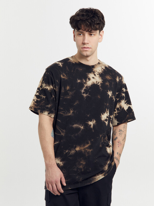 Нижние срезы футболки и рукавов обработаны швом в подгибку на