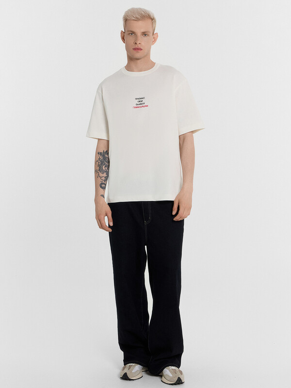 Эта мужская футболка — практичный и комфортный вариант для повседневного гардероба. Свободный прямой силуэт обеспечивает удобную посадку и свободу движений, а длина до линии бедер делает модель универсальной и гармоничной для разных типов фигуры. Горловина округлой формы обработана бейкой из рибаны, что добавляет эластичность и устойчивость к деформации. Спущенное плечо создает современный расслабленный стиль, а короткие рукава делают футболку идеальной для теплого сезона. Материал — кулирка — обладает рядом преимуществ. Этот трикотаж отличается мягкостью, лёгкостью и высокой воздухопроницаемостью, обеспечивая комфорт при носке. Натуральный хлопок в составе кулирки делает изделие гипоаллергенным и приятным к коже. Кулирка также хорошо держит форму и остаётся устойчивой к износу, что делает футболку долговечной. Низ модели и рукавов обработан швом в подгибку, что подчёркивает аккуратность исполнения и продлевает срок службы изделия. Отличный вариант для повседневных образов, сочетающий стиль, комфорт и качество!