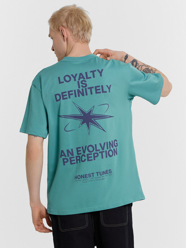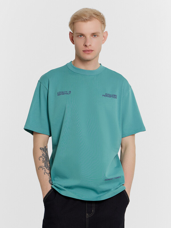 Футболка изготовлена из трикотажного полотна кулирка. Футболка свободная, прямого силуэта.