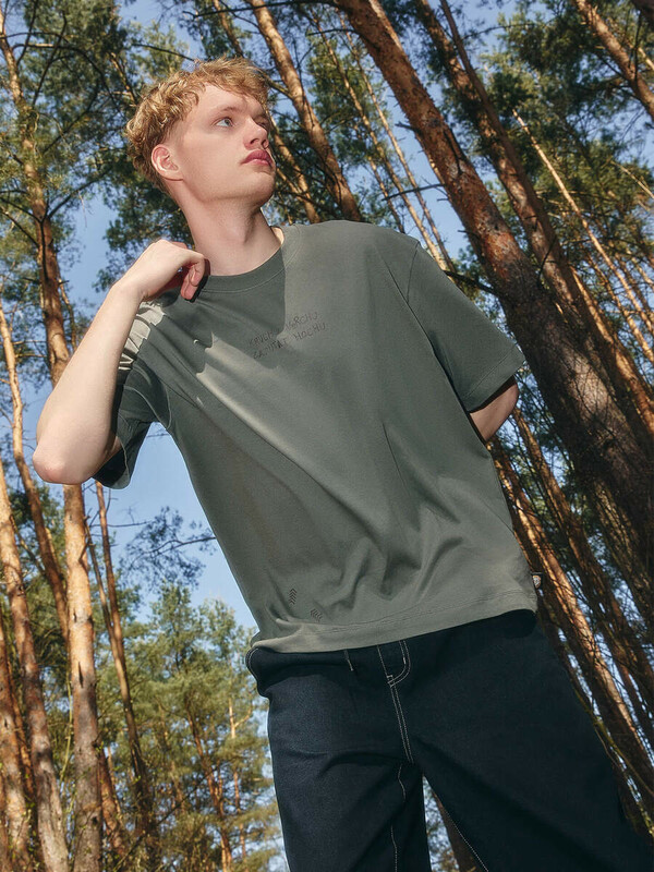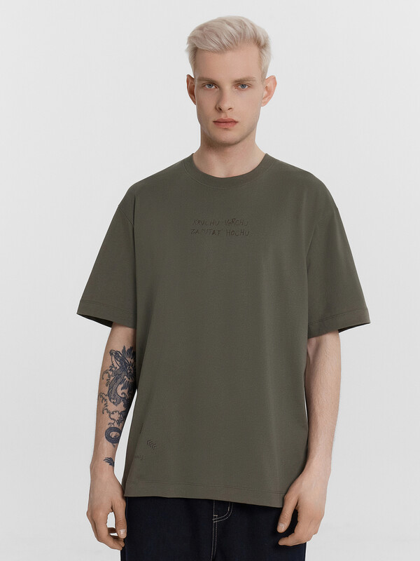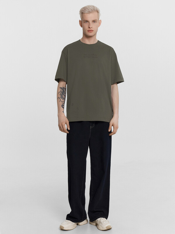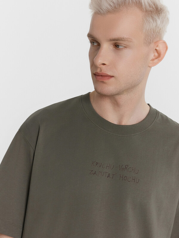 Футболка изготовлена из трикотажного полотна кулирка. Футболка свободная, прямого силуэта.