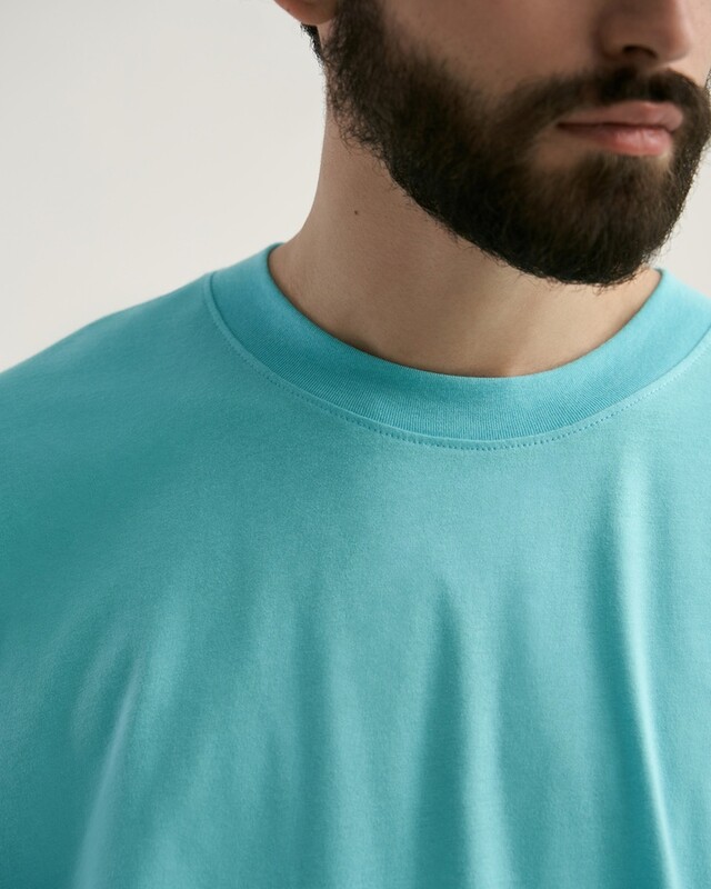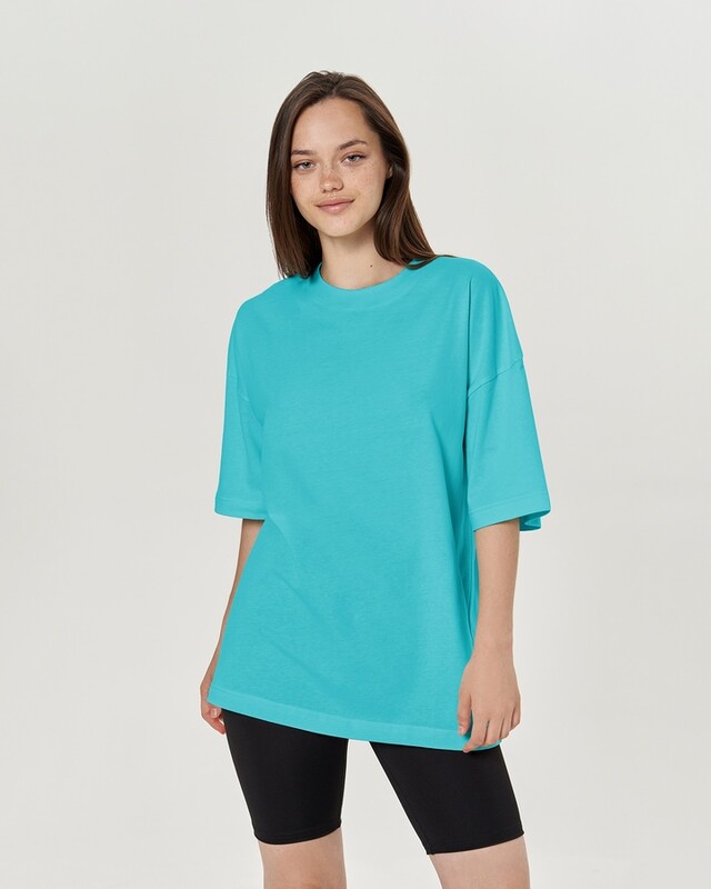 Футболка свободного силуэта. Спущенное плечо. Горловина из двух деталей, из рибаны.
