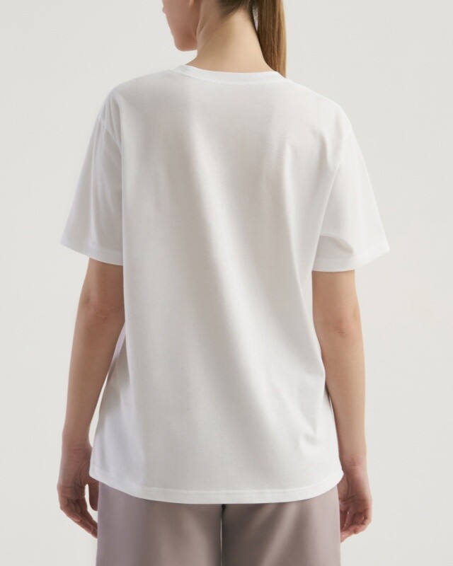 Boyfriend крой, укрепление по горловине спинки, круглый вырез. Горловина рибана. Отстрочка по горловине переда