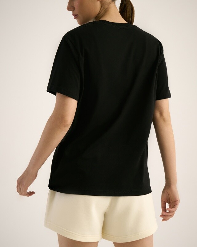 Boyfriend крой, укрепление по горловине спинки, круглый вырез. Горловина рибана. Отстрочка по горловине переда