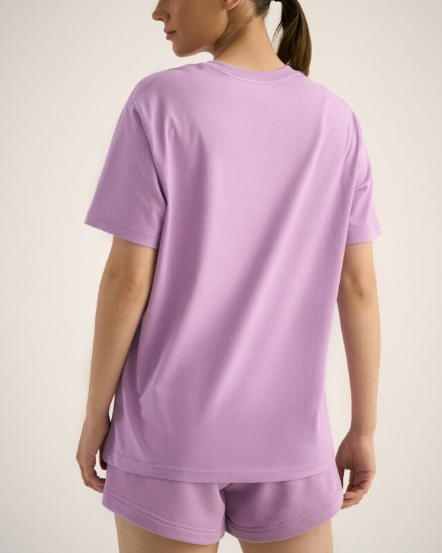 Boyfriend крой, укрепление по горловине спинки, круглый вырез. Горловина рибана. Отстрочка по горловине переда