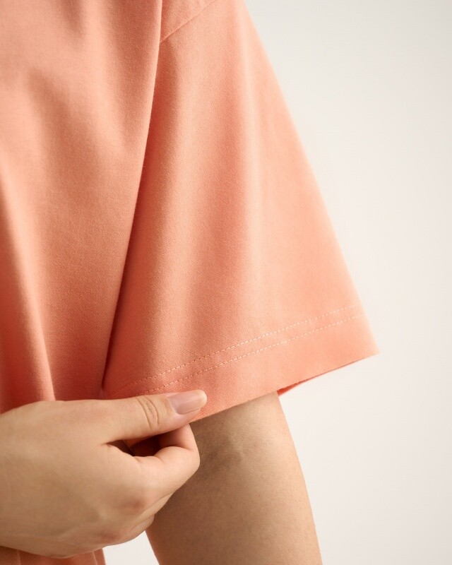 Укороченная футболка, спущенное плечо.Укрепление плечевых швов и шва горловины бейкой из основной ткани. Горловина из рибаны.