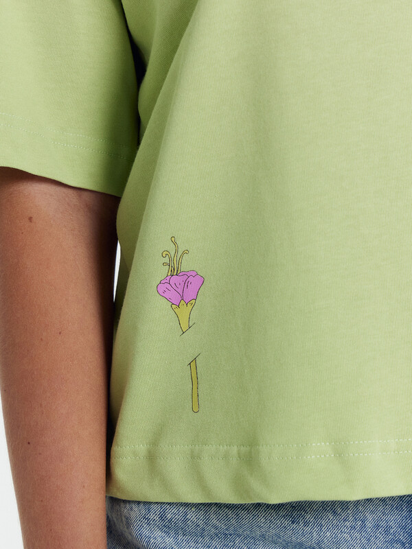 Футболка выполнена из трикотажного полотна кулирка. Футболка свободная, оверсайз.