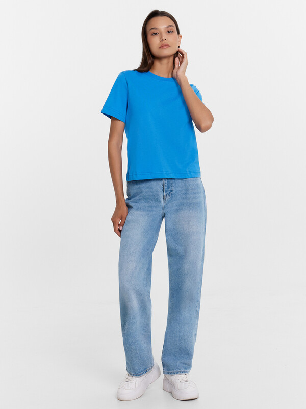 Стильная футболка женская из 100% хлопка. Легкий и натуральный материал этой модели хорошо пропускает воздух, слегка тянется и не сковывает движений. Вырез круглой формы. Свободу движений гарантируют спущенная линия плеча и углубленная пройма. Рукава широкие, чуть выше локтя. Классическая оверсайз футболка - это базовый элемент одежды, ее можно комбинировать с чем угодно. Выбирайте ее для отдыха, прогулки, а также для занятий спортом. Однотонный цвет позволяет носить ее со множеством других вещей. Широкий размерный ряд, есть модели plus-size для девушек с формами. Порадуйте себя и своих близких практичными подарками от Mark Formelle!