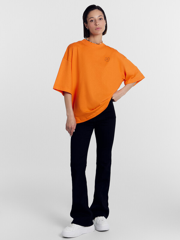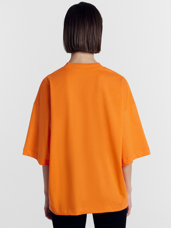 Футболка женская свободного силуэта из трикотажного кулирного пототна. Горловина круглой формы, с широкой обтачкой из рибаны. Плечо спущено, пройма углублена. Рукав втачной, длиной по локоть. Подгибка низа и рукавов широкая.