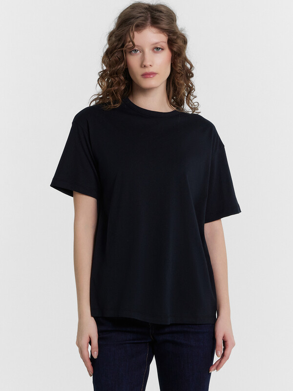 Эта женская футболка станет незаменимой базовой моделью в вашем гардеробе. Прямой и свободный крой обеспечивает комфорт и свободу движений. Круглая форма горловины и короткие рукава делают её универсальной и подходящей для любого случая. Изделие выполнено из хлопковой кулирки, гарантирующей мягкость и приятное ощущение на коже. Эта футболка идеально сочетается с различными элементами гардероба, создавая стильные и удобные образы на каждый день.