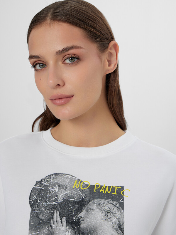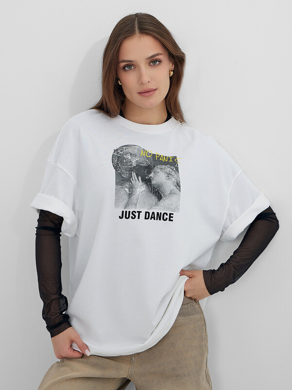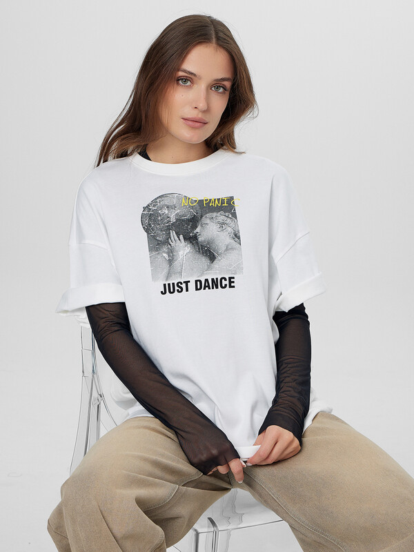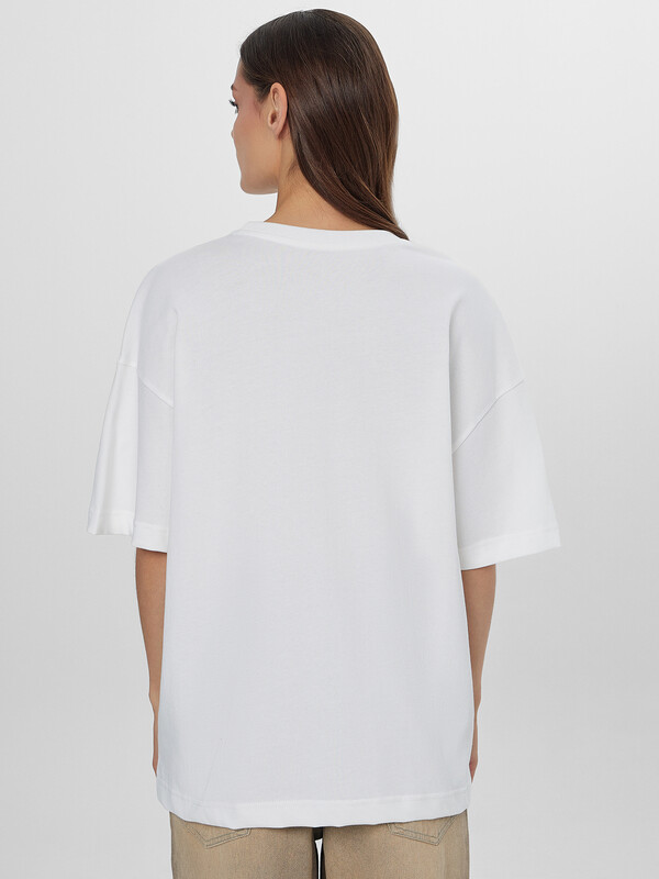 Такая футболка легко сочетается с джинсами для повседневного образа, с юбками для более женственных луков или с велосипедками для спортивного стиля. Практичный и стильный вариант, который подчеркнет вашу индивидуальность и подарит ощущение легкости в течение всего дня.