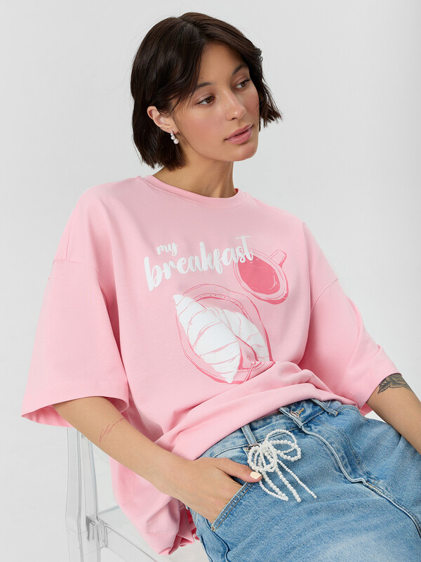 Женская футболка силуэта оверсайз из трикотажной хлопковой кулирки - это комфортная и стильная модель, идеально подходящая для повседневного гардероба. Удлиненный крой и свободная посадка создают расслабленный образ, а спущенное плечо и углубленная пройма подчеркивают актуальность силуэта. Круглая горловина с обтачкой из рибаны сохраняет форму и придает аккуратный вид, а широкие рукава длиной чуть выше локтя добавляют объема и свободы движений. Натуральный хлопок в составе обеспечивает мягкость, воздухопроницаемость и комфорт даже в жаркую погоду. Такая футболка легко сочетается с джинсами, велосипедками, шортами или юбками, позволяя создавать образы в стиле casual, streetwear или спорт-шик.