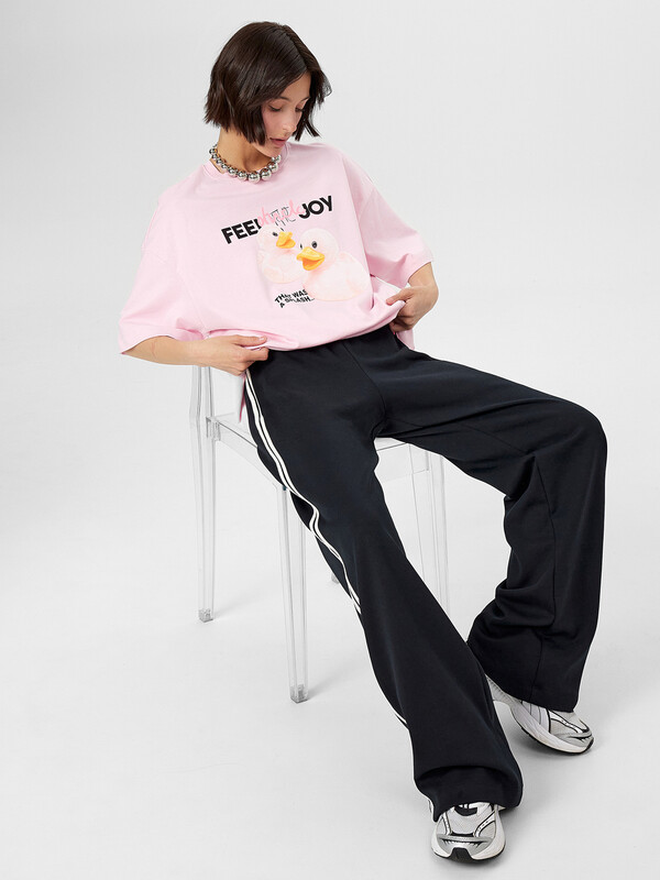 Женская футболка силуэта оверсайз из трикотажной хлопковой кулирки - это комфортная и стильная модель, идеально подходящая для повседневного гардероба. Удлиненный крой и свободная посадка создают расслабленный образ, а спущенное плечо и углубленная пройма подчеркивают актуальность силуэта. Круглая горловина с обтачкой из рибаны сохраняет форму и придает аккуратный вид, а широкие рукава длиной чуть выше локтя добавляют объема и свободы движений. Натуральный хлопок в составе обеспечивает мягкость, воздухопроницаемость и комфорт даже в жаркую погоду. Такая футболка легко сочетается с джинсами, велосипедками, шортами или юбками, позволяя создавать образы в стиле casual, streetwear или спорт-шик.