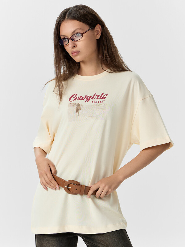 Женская футболка силуэта оверсайз из трикотажной хлопковой кулирки - это комфортная и стильная модель, идеально подходящая для повседневного гардероба. Удлиненный крой и свободная посадка создают расслабленный образ, а спущенное плечо и углубленная пройма подчеркивают актуальность силуэта. Круглая горловина с обтачкой из рибаны сохраняет форму и придает аккуратный вид, а широкие рукава длиной чуть выше локтя добавляют объема и свободы движений. Натуральный хлопок в составе обеспечивает мягкость, воздухопроницаемость и комфорт даже в жаркую погоду. Такая футболка легко сочетается с джинсами, велосипедками, шортами или юбками, позволяя создавать образы в стиле casual, streetwear или спорт-шик.