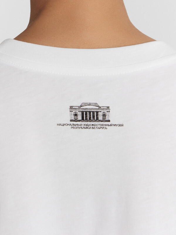 Нижние срезы футболки и рукавов обработаны швом вподгибку.