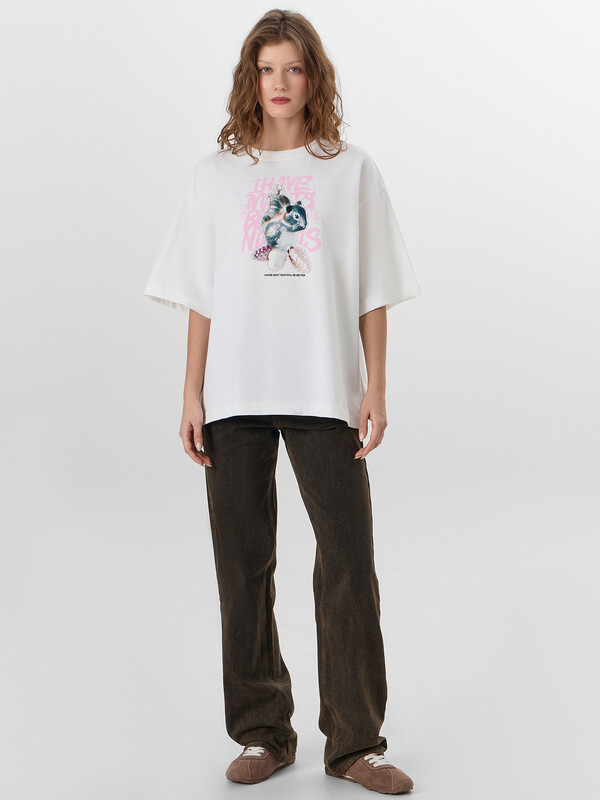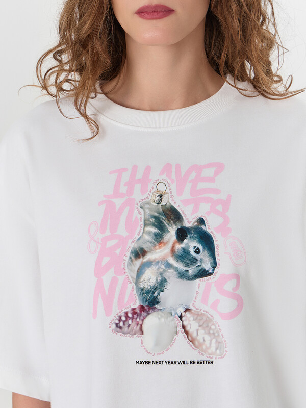 Футболка с новогодним принтом — идеальный выбор для создания праздничного настроения. Свободный оверсайз крой и спущенная линия плеча позволяют футболке мягко скользить по фигуре, не обтягивая ее, что дарит полную свободу движений. Короткие рукава и круглая горловина с отделкой из рибаны сохраняют мягкое, ненавязчивое касание к коже, обеспечивая удобство без давления.