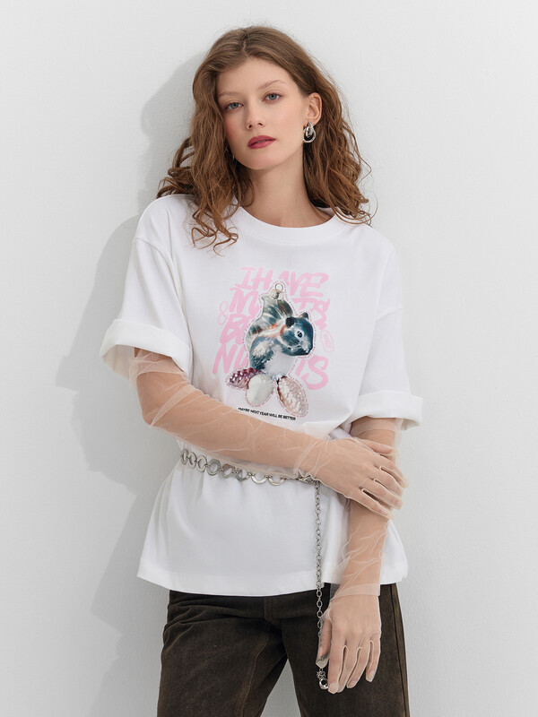 Эта футболка станет идеальным выбором для новогодних вечеринок, зимних прогулок и уютных вечеров в кругу семьи. Сочетайте ее с джинсами, юбками-пачками или кожаными брюками — образ будет одинаково очаровательным и запоминающимся.