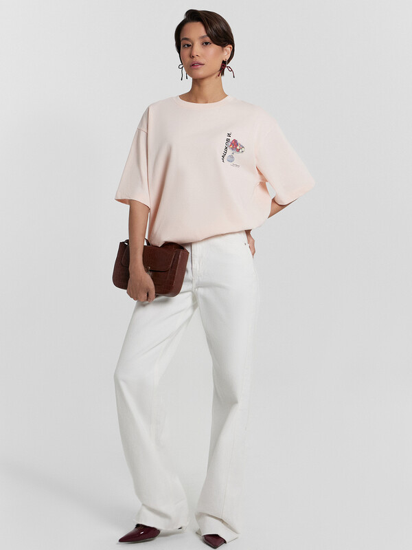 Женская футболка Mark Formelle - идеальное сочетание комфорта и актуального дизайна. Свободный оверсайз фасон делает ее универсальным элементом гардероба, обеспечивая непринужденный стиль и свободу движений. Изделие выполнено из трикотажной кулирки - мягкого, приятного к телу материала, который хорошо пропускает воздух и обеспечивает комфорт в течение дня. Округлая горловина обработана обтачкой из рибаны, что добавляет аккуратность и эластичность. Короткие втачные рукава и спущенная линия плеча создают расслабленный силуэт, идеально подходящий как для повседневных, так и для многослойных образов. Нижние срезы футболки и рукавов обработаны швом вподгибку, что гарантирует долговечность и эстетичный вид. Практичная и стильная, модель станет надежной основой для различных сочетаний, дополняя ваш гардероб актуальными акцентами.