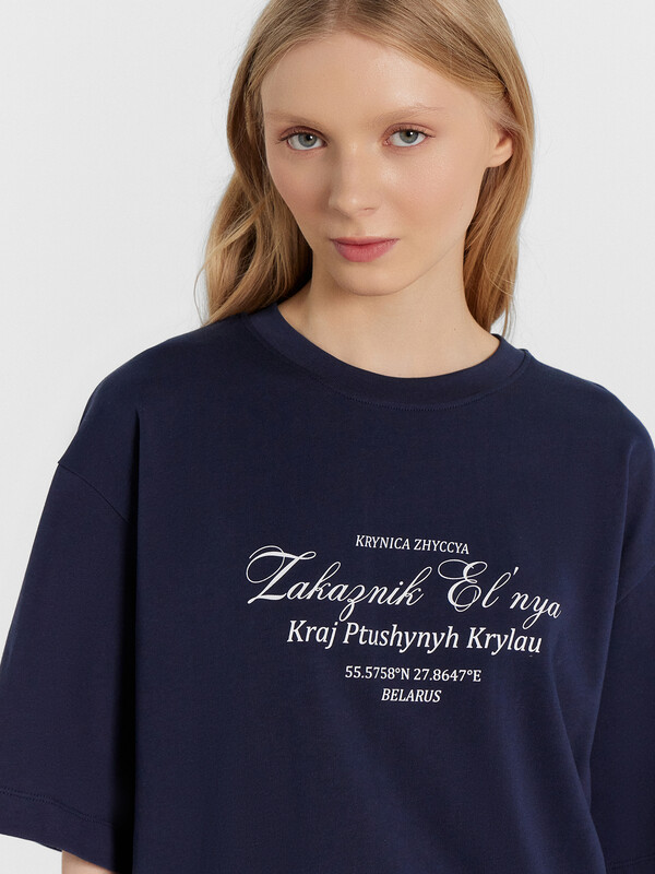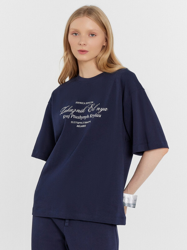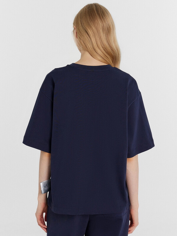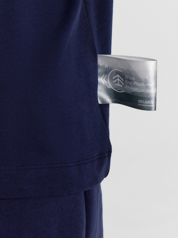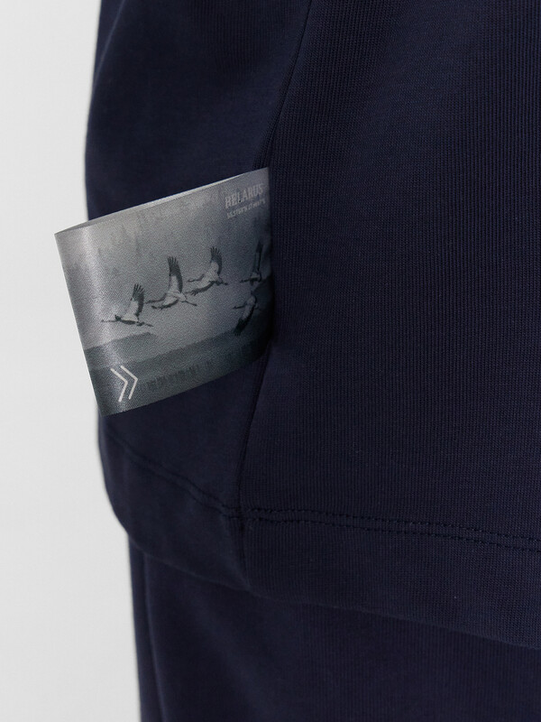 Нижние срезы футболки и рукавов обработаны швом вподгибку.
