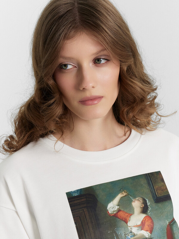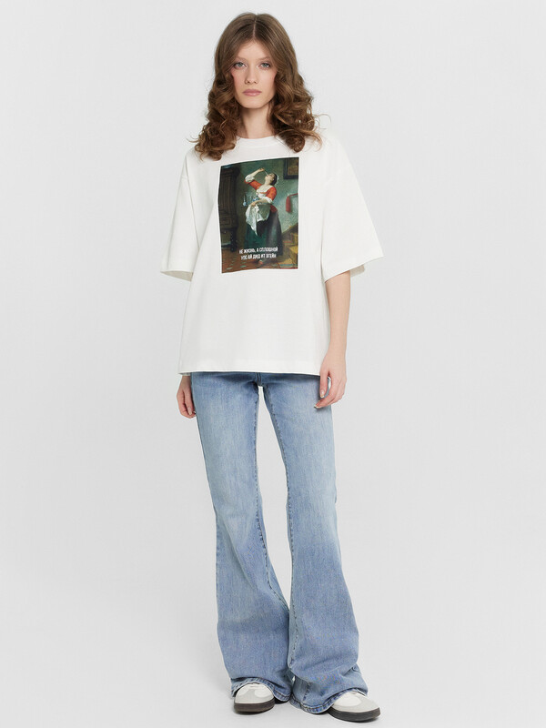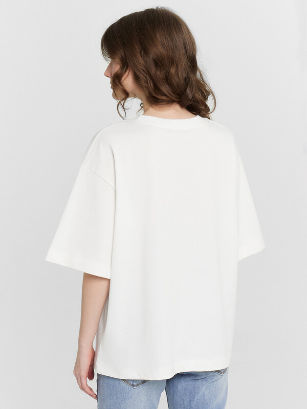 Эта женская футболка оверсайз — идеальное сочетание комфорта, стильного дизайна и универсальности. Модель выполнена из нежной хлопковой кулирки — мягкого, приятного на ощупь материала, который обладает высокой воздухопроницаемостью. Благодаря этому ткань позволяет коже дышать, предотвращая перегрев и обеспечивая комфорт даже в жаркую погоду. Отличная износостойкость материала гарантирует долгий срок службы изделия, а также сохранение формы и качества даже после многократных стирок. Свободный крой создает расслабленный и современный образ, позволяя легко комбинировать футболку с различными элементами гардероба. Округлая горловина добавляет классический акцент, а рукава со спущенной линией плеча придают непринужденности и легкости в движении. Этот стильный элемент гардероба идеально подходит для повседневного ношения, прогулок, встреч с друзьями и активного отдыха. Дополните свой гардероб этой удобной и модной футболкой, наслаждаясь качеством и комфортом каждый день!