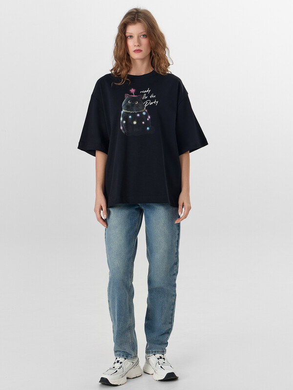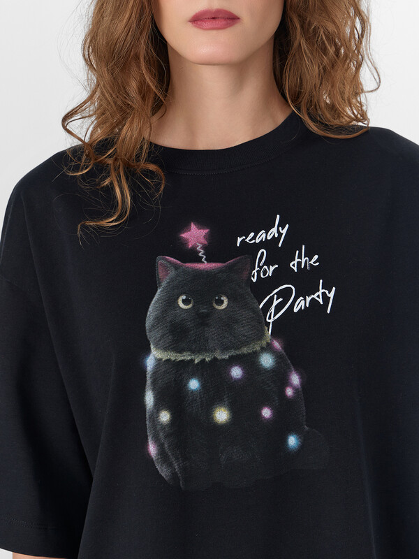 Эта футболка станет идеальным выбором для новогодних вечеринок, зимних прогулок и уютных вечеров в кругу семьи. Сочетайте ее с джинсами, юбками-пачками или кожаными брюками — образ будет одинаково очаровательным и запоминающимся.