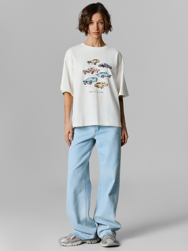 Футболка с новогодним принтом — идеальный выбор для создания праздничного настроения. Свободный оверсайз крой и спущенная линия плеча позволяют футболке мягко скользить по фигуре, не обтягивая ее, что дарит полную свободу движений. Короткие рукава и круглая горловина с отделкой из рибаны сохраняют мягкое, ненавязчивое касание к коже, обеспечивая удобство без давления.