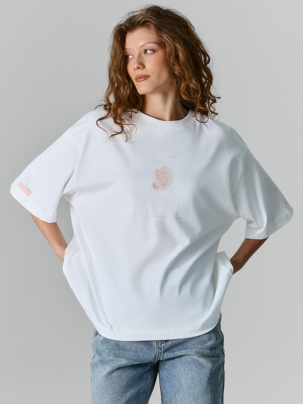 Футболка с новогодним принтом — идеальный выбор для создания праздничного настроения. Свободный оверсайз крой и спущенная линия плеча позволяют футболке мягко скользить по фигуре, не обтягивая ее, что дарит полную свободу движений. Короткие рукава и круглая горловина с отделкой из рибаны сохраняют мягкое, ненавязчивое касание к коже, обеспечивая удобство без давления.