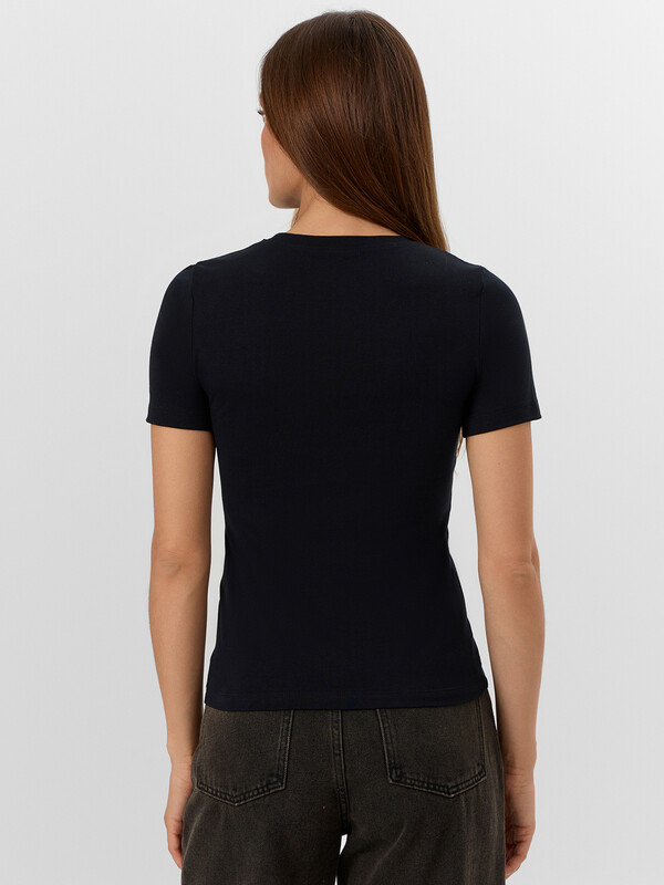 Женская футболка прилегающего силуэта — это классика базового гардероба, которая идеально подчеркивает фигуру и обеспечивает комфорт в повседневной носке. Круглая горловина придаёт изделию лаконичный и универсальный вид, а короткие рукава делают модель подходящей для теплых дней и многослойных образов. Нижние срезы футболки и рукавов обработаны швом вподгибку, что добавляет аккуратности и долговечности изделию. Материал, из которого выполнена модель, — хлопок с небольшим содержанием эластичных волокон, обеспечивает мягкость, воздухопроницаемость и свободу движений. Такая футболка легко сочетается с джинсами, юбками и шортами, что делает её идеальным выбором для повседневного или спортивного стиля. Простой и практичный элемент гардероба, который выделяется качеством и удобством! Рекомендуем.