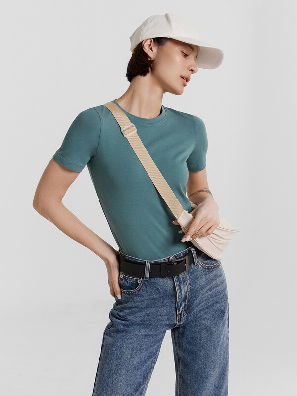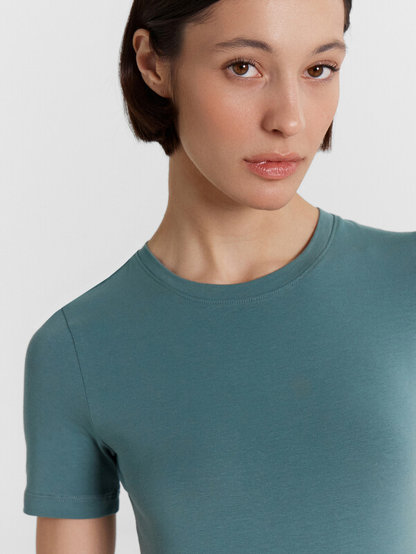 Женская футболка прилегающего силуэта – стильное и комфортное решение для повседневного гардероба. Модель с круглой горловиной и короткими рукавами идеально подчёркивает фигуру, придавая изящность и элегантность. Нижние срезы футболки и рукавов аккуратно обработаны швом вподгибку, что обеспечивает долговечность и аккуратный вид. Изготовленная из мягкой и приятной кулирки, эта модель дарит комфорт и удобство в течение всего дня. Прекрасно сочетается с различными элементами гардероба, позволяя создавать разнообразные и стильные образы.